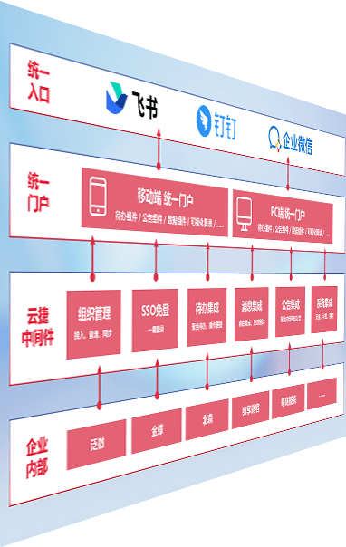 对协作平台提供支持服务,,,支持企业应用与协作平台对接,,,包含组织同步、、、、消息集成、、、、待办集成等。。。。支持目前主流的协作平台:钉钉、、企微和飞书。。。。